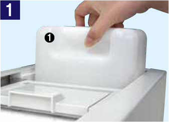 ※行う前に、液晶画面にて水量設定0 となっていないことをご確認ください。 給水タンク①を取り外します。