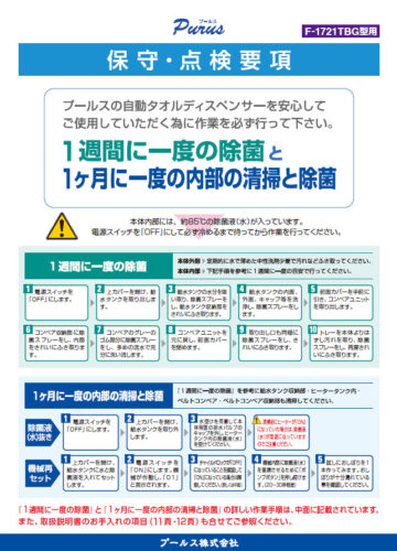 「プールス」F-1721TBE型 の保守点検要項はこちら。